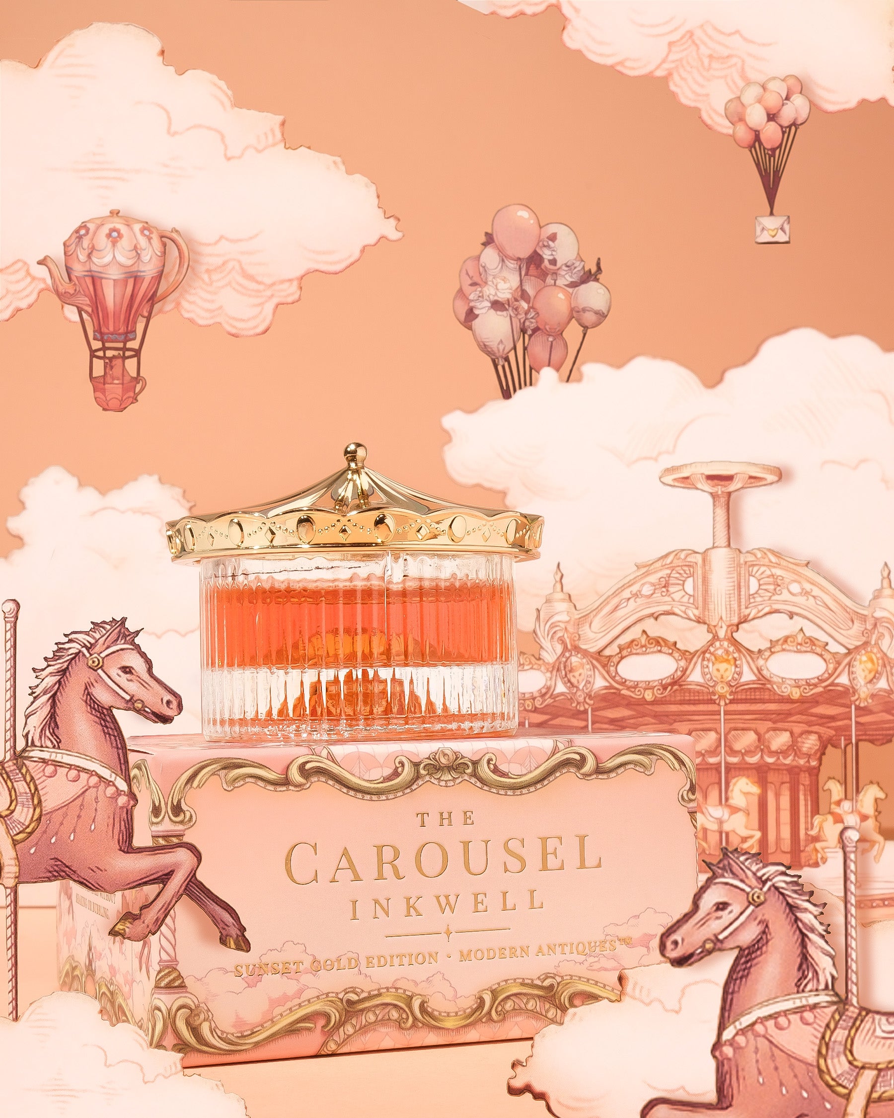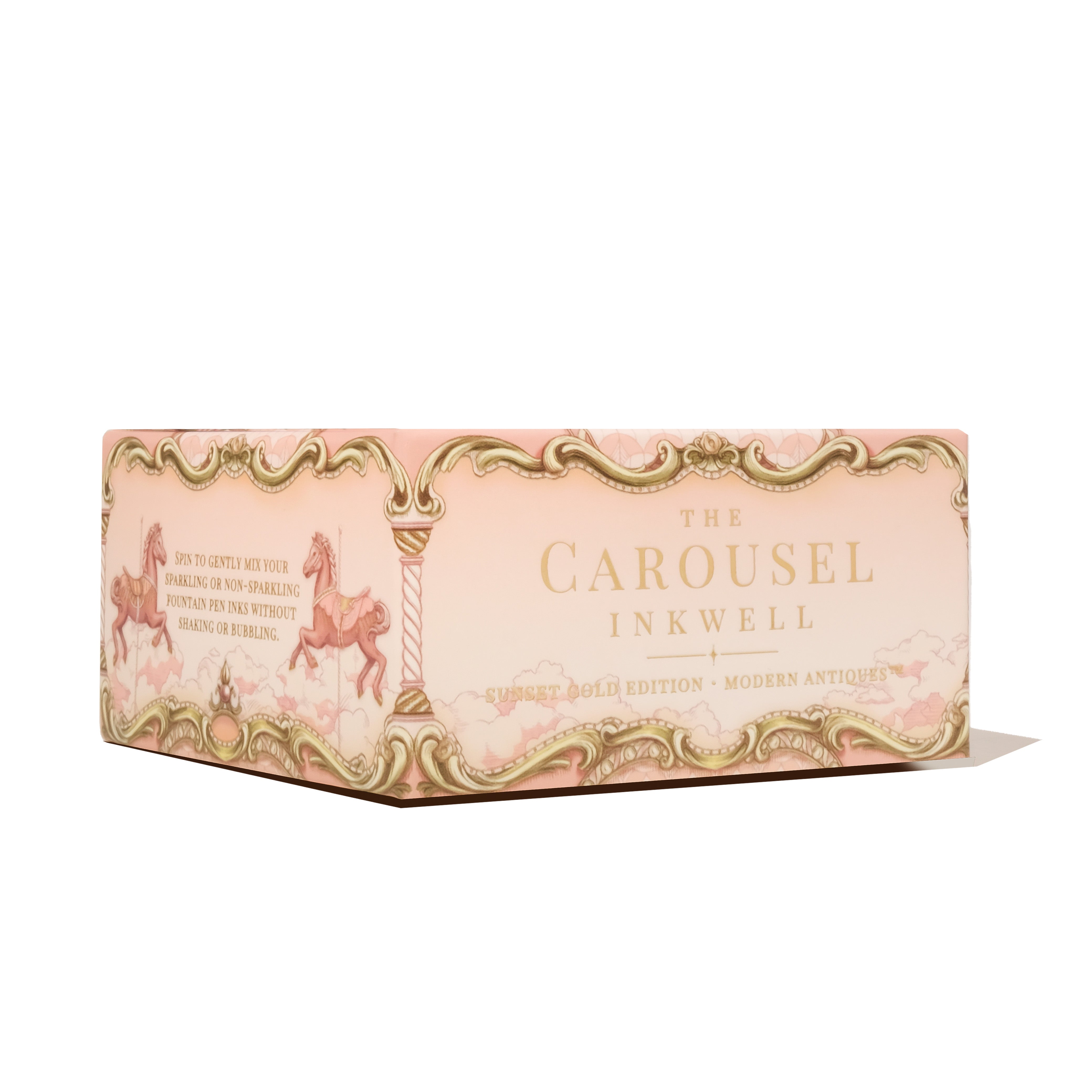 The Sunset Gold Carousel Inkwell shines bright in a full-polished warm gold finish. Appreciate every detail of this Modern Antique™, from the charming glass vessel, to the intricacies of the tented metal top. With a gentle spin of the Carousel, the inkwell springs to life, blending your most charming inks in a mesmerising display.