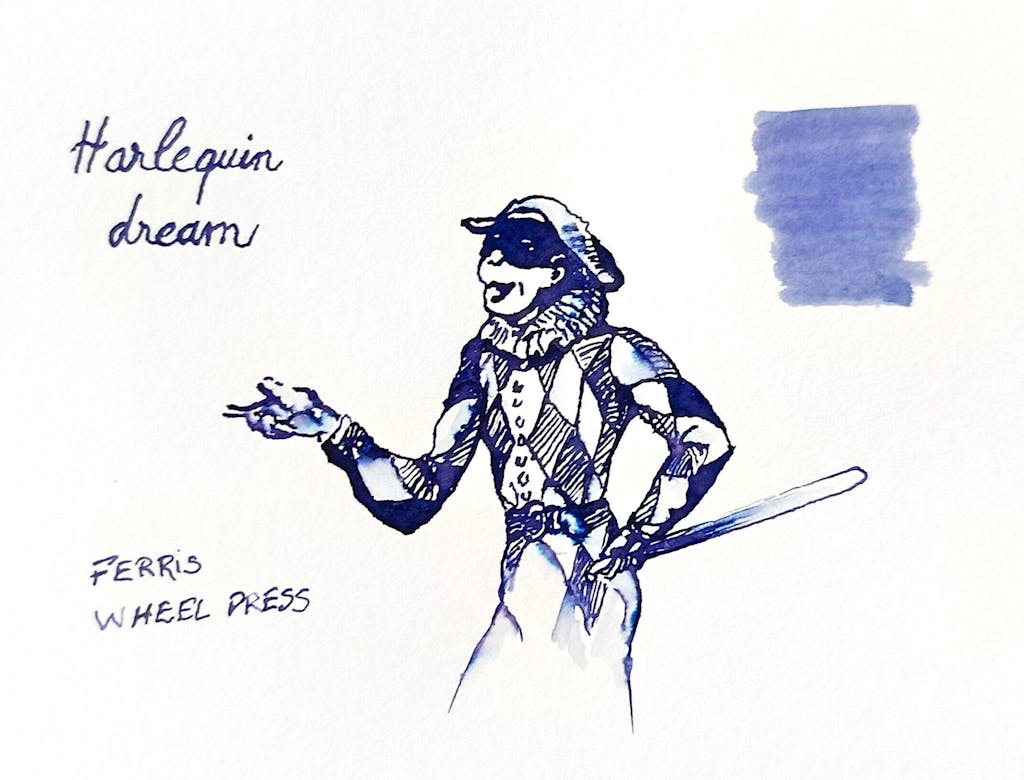 Step into a realm of enchantment as Lord H.H. Evergreen escorts you to a night at the theatre, where his heart dances to the performances of his cherished acrobatic troupe. Clad in resplendent attire, he watches with a monocle and is captivated by gravity-defying feats. The rustle of tulle and glimmer of silk shimmers under a bed evening stars, casting a low glimmer over the audience. In this era where dreams know no bounds, use this deep periwinkle ink to capture the magic of the stage and gilded-age extravagance.